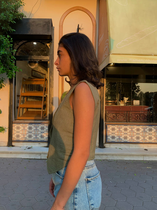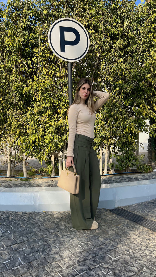 Sold outOlive Twist-Waist Wide-Leg Pants