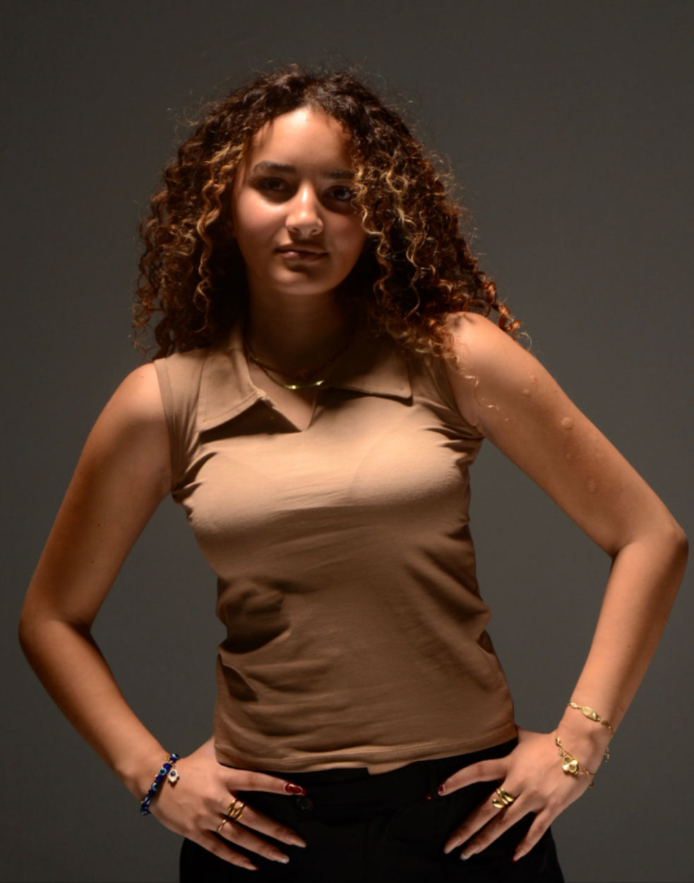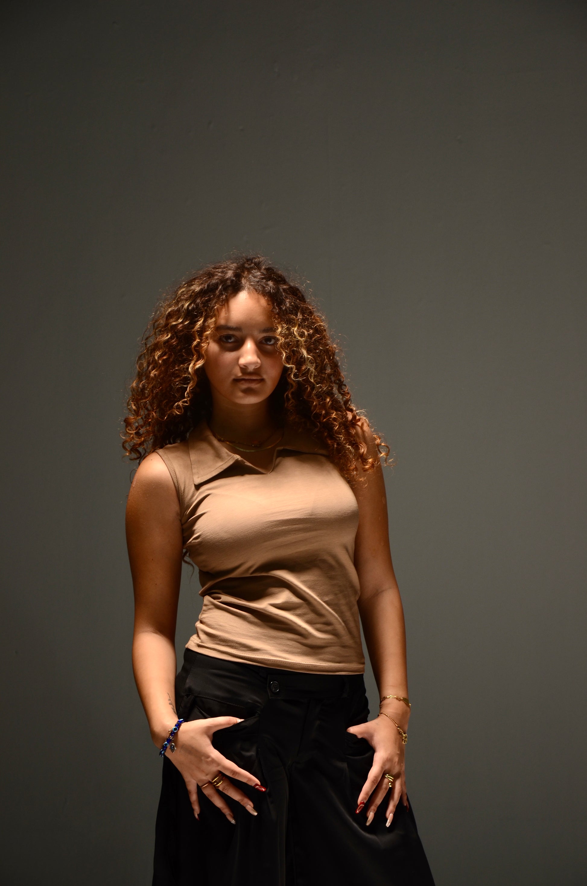 Sleeveless Collar Top (Beige)